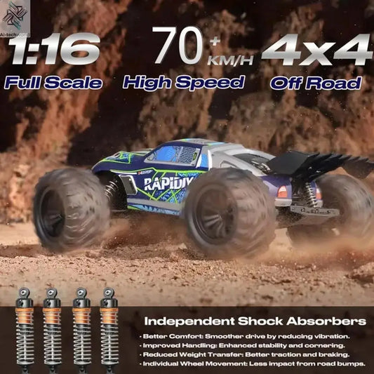 1:16 4WD 70+KM/H High Speed RC Car with Box All Terrain Application 2.4G Remote Control Car with LED Dirt Bike Toys for Children