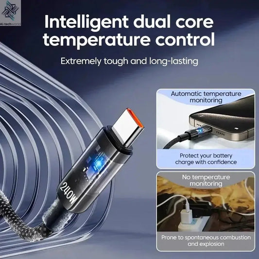 0.25/1/1.5/2M 240W Nylon USB C PD Super Fast Charging Data Cable with LED Digital Display