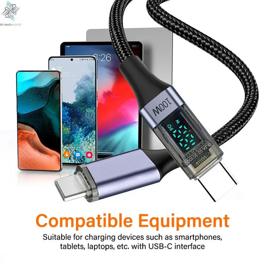 100W Type C to Type C Phone Super Fast Charging Cable LED Display USB C To C Data Cord For Xiaomi huawei OPPO 0.5M/1M/2M Long