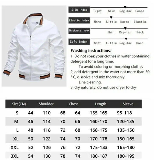 Autumn and Winter Men's Stand Collar Casual Zipper Jacket Outdoor Sports Coat Windbreaker Jacket for Men Waterproof Bomber