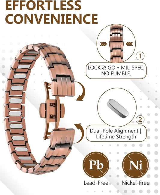 ARADOO Premium Copper Bracelet for Men with Strength 5000 Gauss Magnets Titanium Steel Wristband Jewelry Gifts