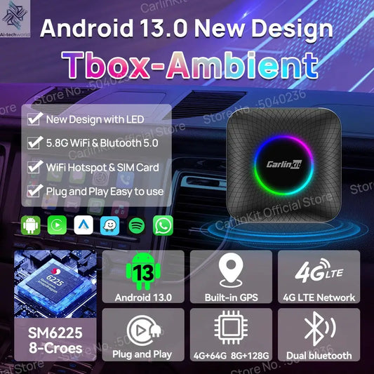 CarlinKit CarPlay Ai Box Android 13 SM6225 8 Cores 64GB 128GB Car Smart Streaming Box Wireless CarPlay Android Auto For Netflix