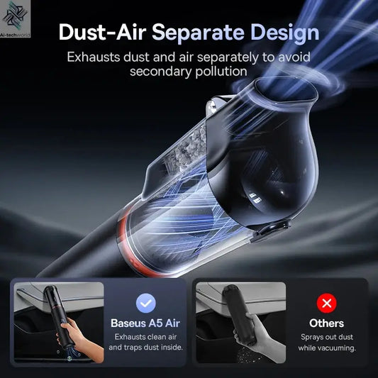 Baseus A5 Air Car Vacuum Cleaner 2-in-1 Powerful Wireless Cleaner Strong Suction Handheld Car Cleaning Portable Home Appliance