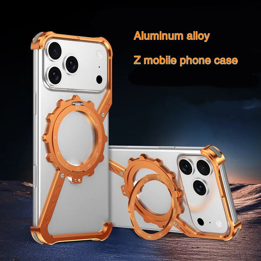 New Product Aluminum Frameless Phone Case 360 Magnetic Rotation Stand Shockproof Bumper Electroplate for iphone 17 Pro Max Men