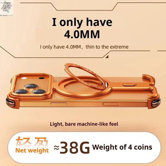 Oatsbasf 9-Shaped Metal Frameless Phone Case for iPhone 17 Pro Max/17 Pro with Stand Magsafe Minimalist Bumper Shockproof Cover