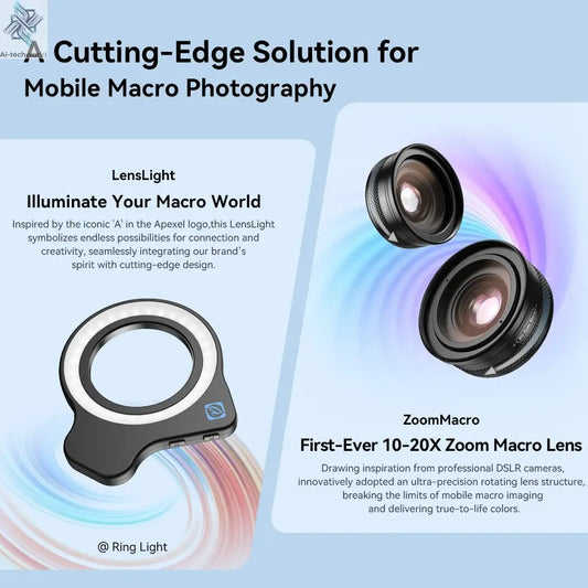 APEXEL 10-20X Zoom Macro Lens HD Micro Phone Camera Lenses with LED Fill Light for iPhone Samsung all Smartphones Eyelash Macro