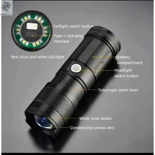 XHP50 Super Bright Led Double Head Flashlight Waterproof Rechargeable Zoomable Torch Work Light Spotlight Floodling Lantern