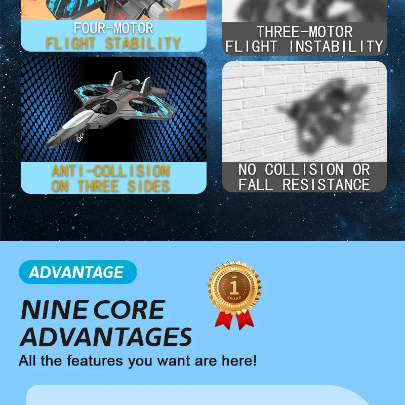 2.4G Remote Control Fighter With LED Colorful Lights Electric Foam Glider Stunt Tumbling UAV Hovering Helicopter Aircraft Model