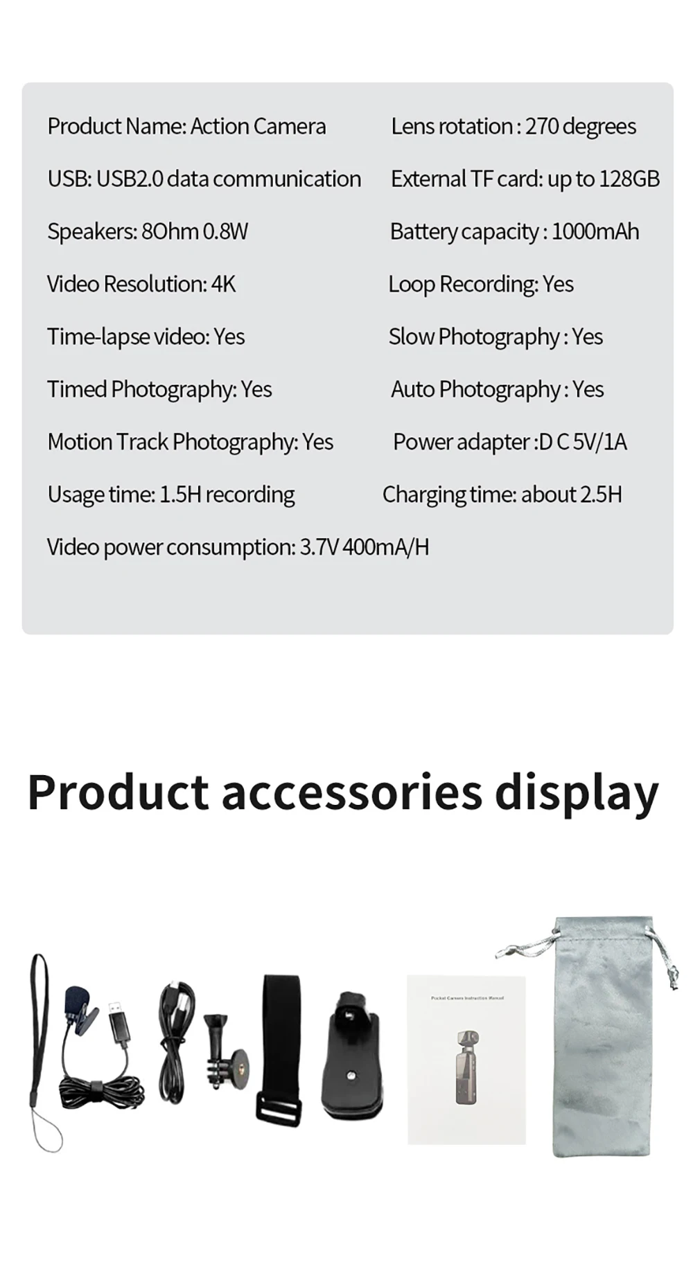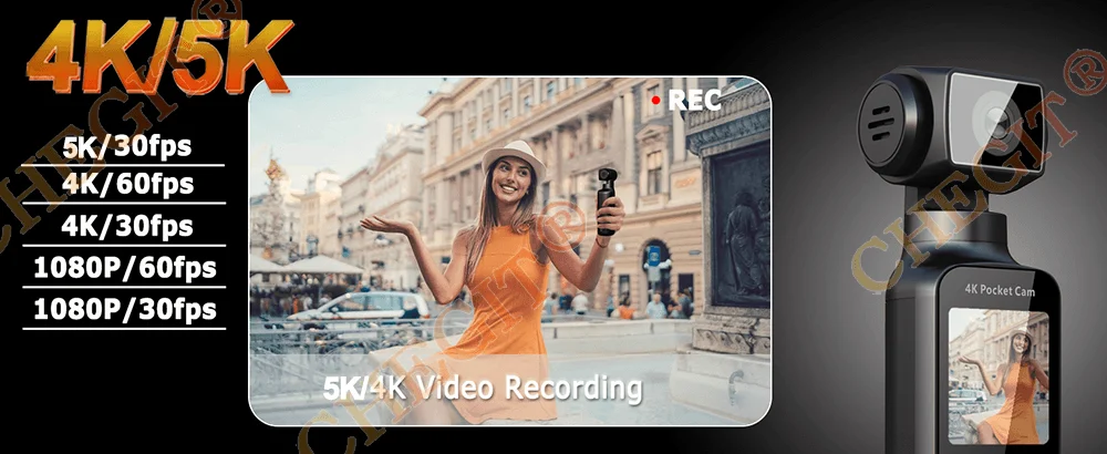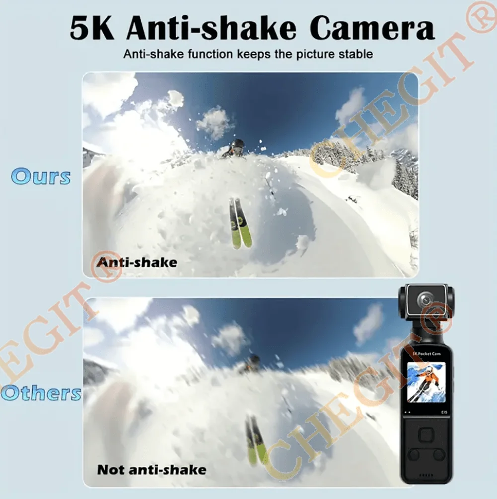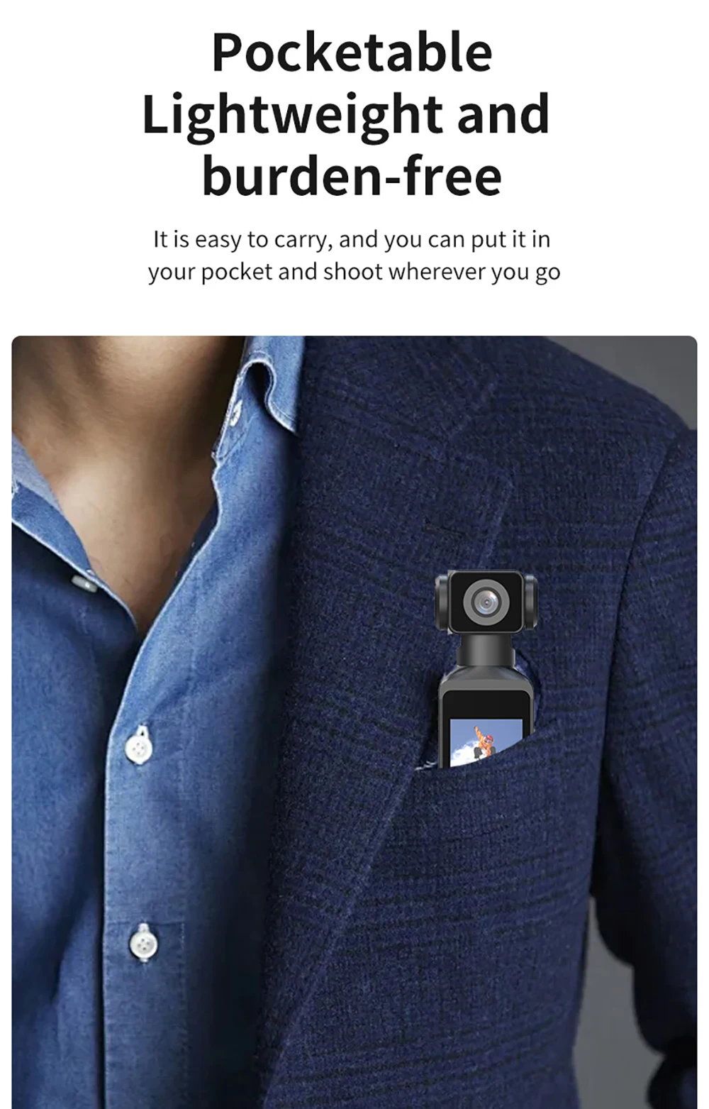 This product has a true 4K/5K lens,This product can be selected from 4K/5K,5K Upgrade Six Axis Anti Shake, and the pocket camera's small screen does not affect the size of the captured image. It can read real videos on mobile phones or computers.