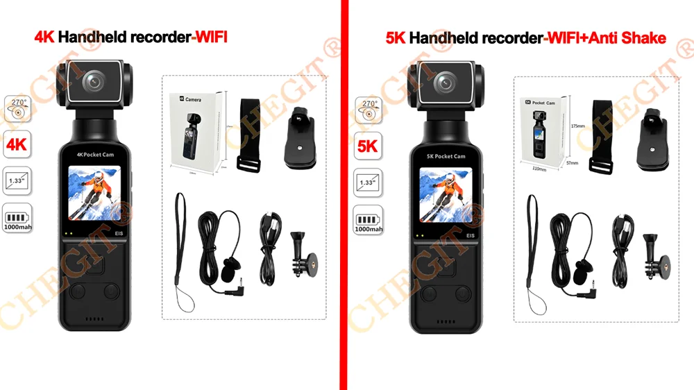 5K 4K WIFI Pocket Camcorder 1.3" Screen 270° Rotatable Mini sports Action Camera Anti-shake Cams EIS Portable Security Recorder