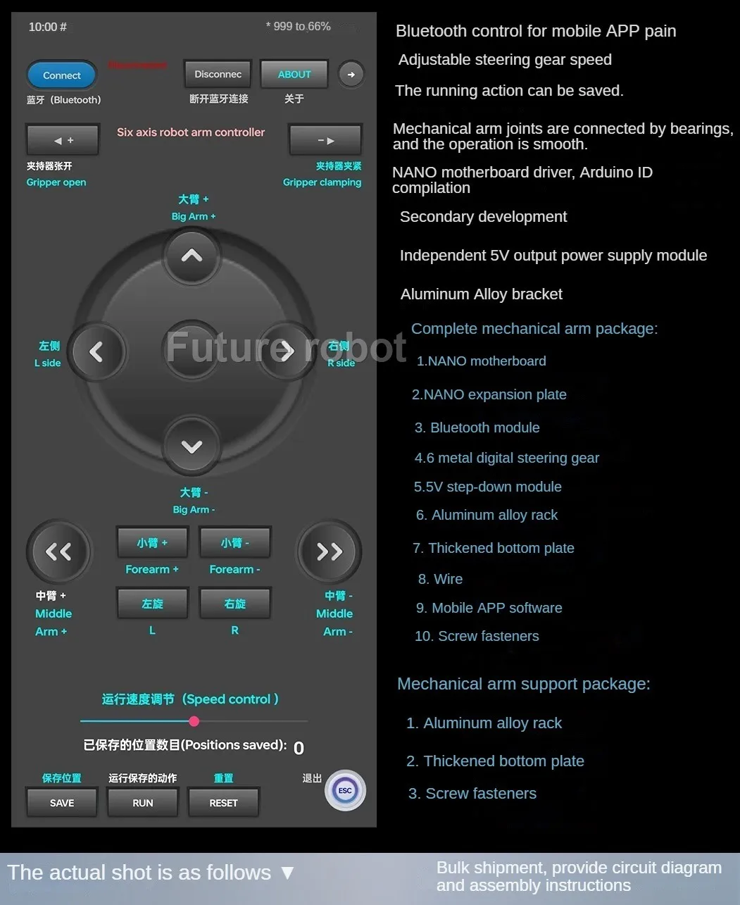 Note: the robot arm is unassembled, we offer the PDF manual.