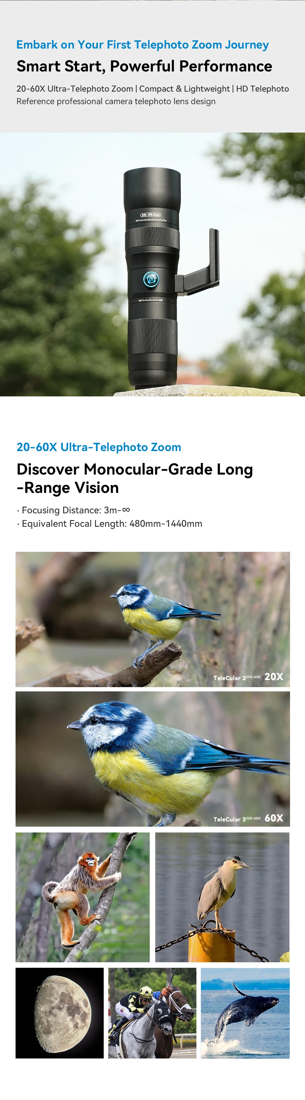 【Metal Material & 4K HD Lens】: The 20-60X telephoto lens is made of aluminum alloy and equipped with high-quality glass lenses. It's durable and clear. This powerful lens can capture the finest details and the most accurate colors, enhancing image clarity and sharpness, allowing your phone to take long-distance shots without compromising image quality.