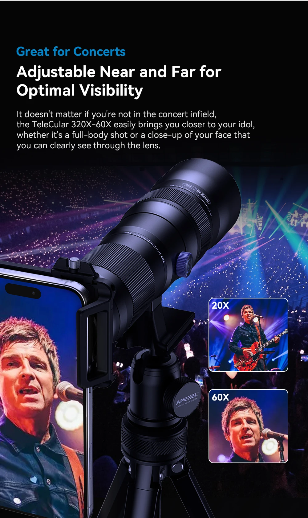 APEXEL 20-60x Telephoto Zoom Lens Universal Phone Telescope Lenses with Metal Tripod for Camping Bird-watching Concerts, Bird-watching for iPhone Android Smartphones