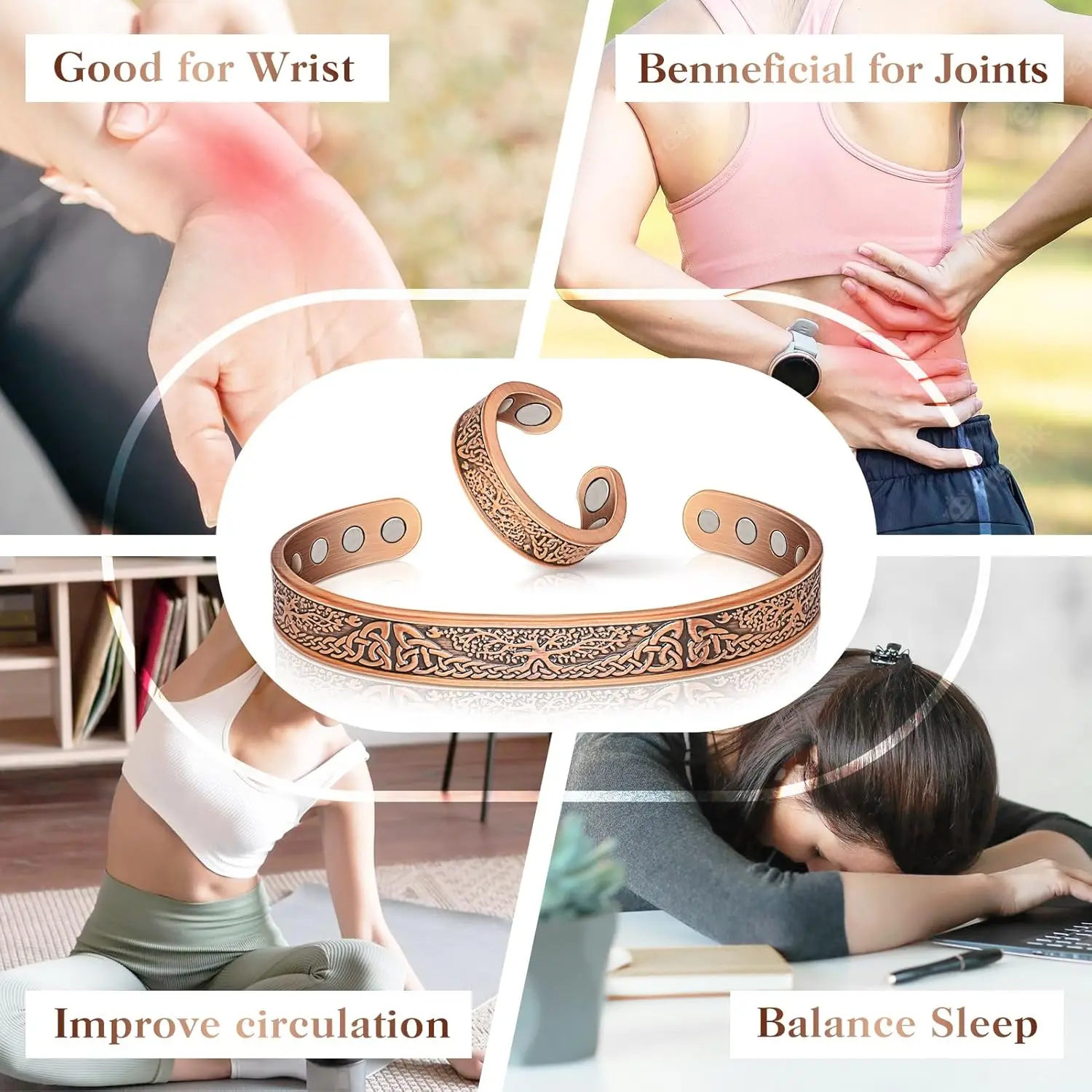ARADOO Copper Bracelets for Women & Lymphatic Drainage Ring, Magnetic Lymph Detox Ring and Magnetic Copper Bracelet Jewelry Gift