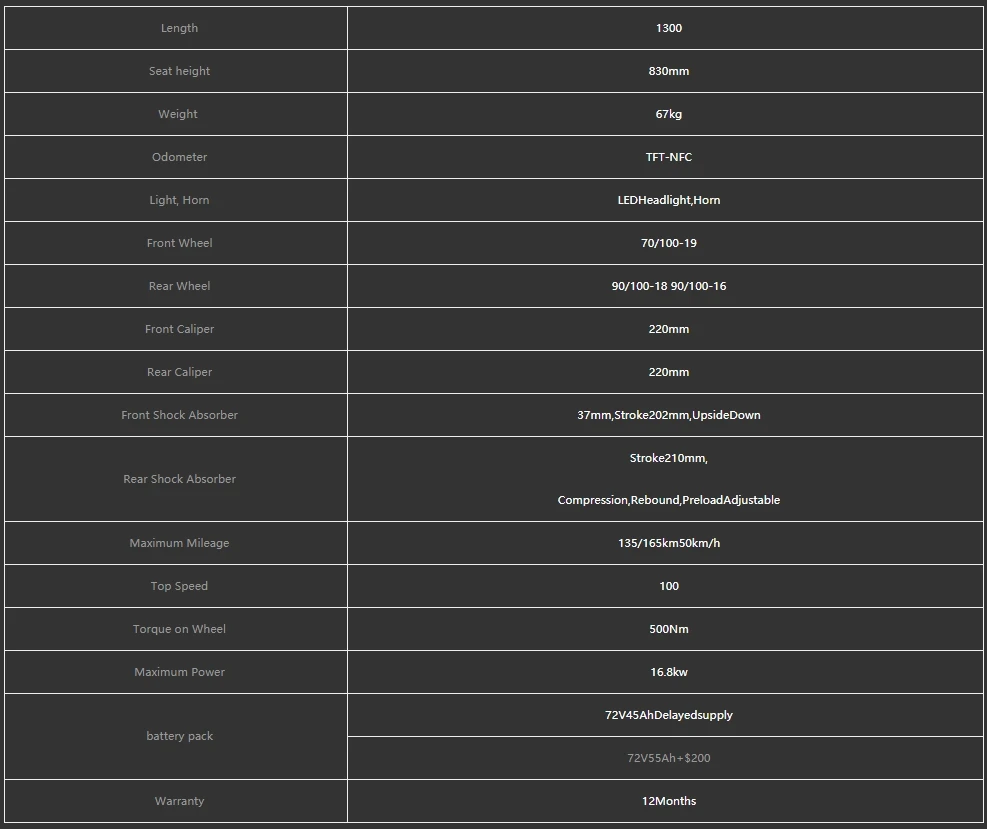 High Performance: Reaches speeds of 100KM/H with 500Nm of torque.