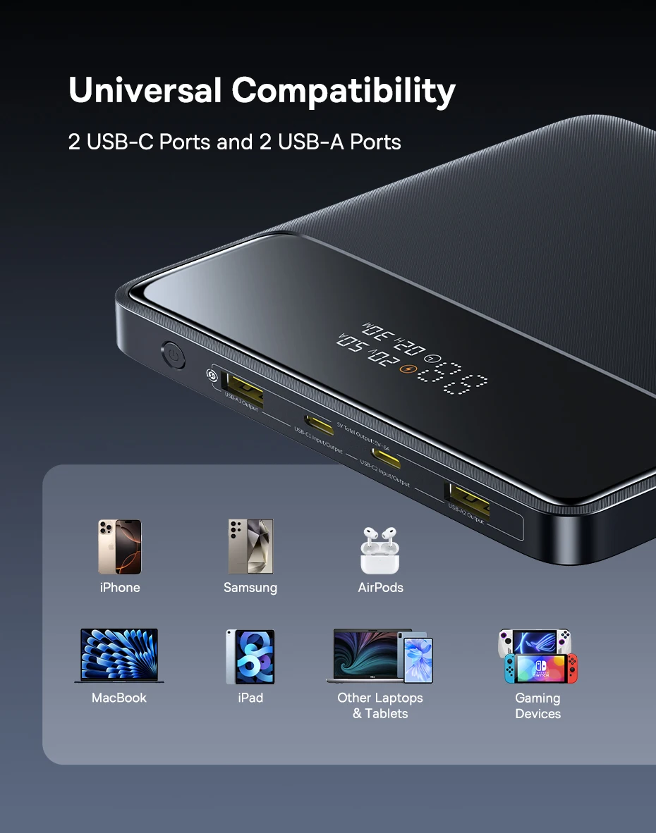 4 Ports for Multiple Devices: Dual USB-A USB-C