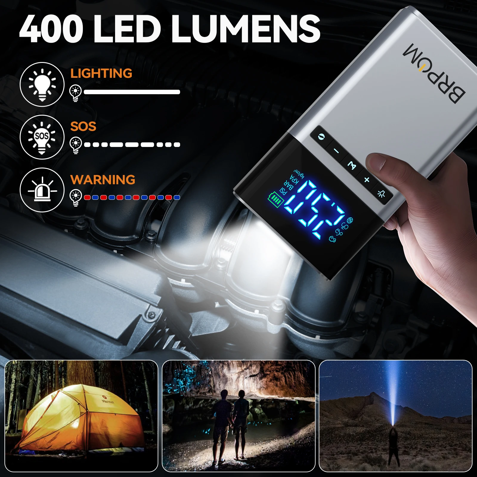 BRPOM Portable Car Starter with Air Compressor Tire Inflat Starter 8000mAh Car Battery Starter Box Car Battery Jumper Starter