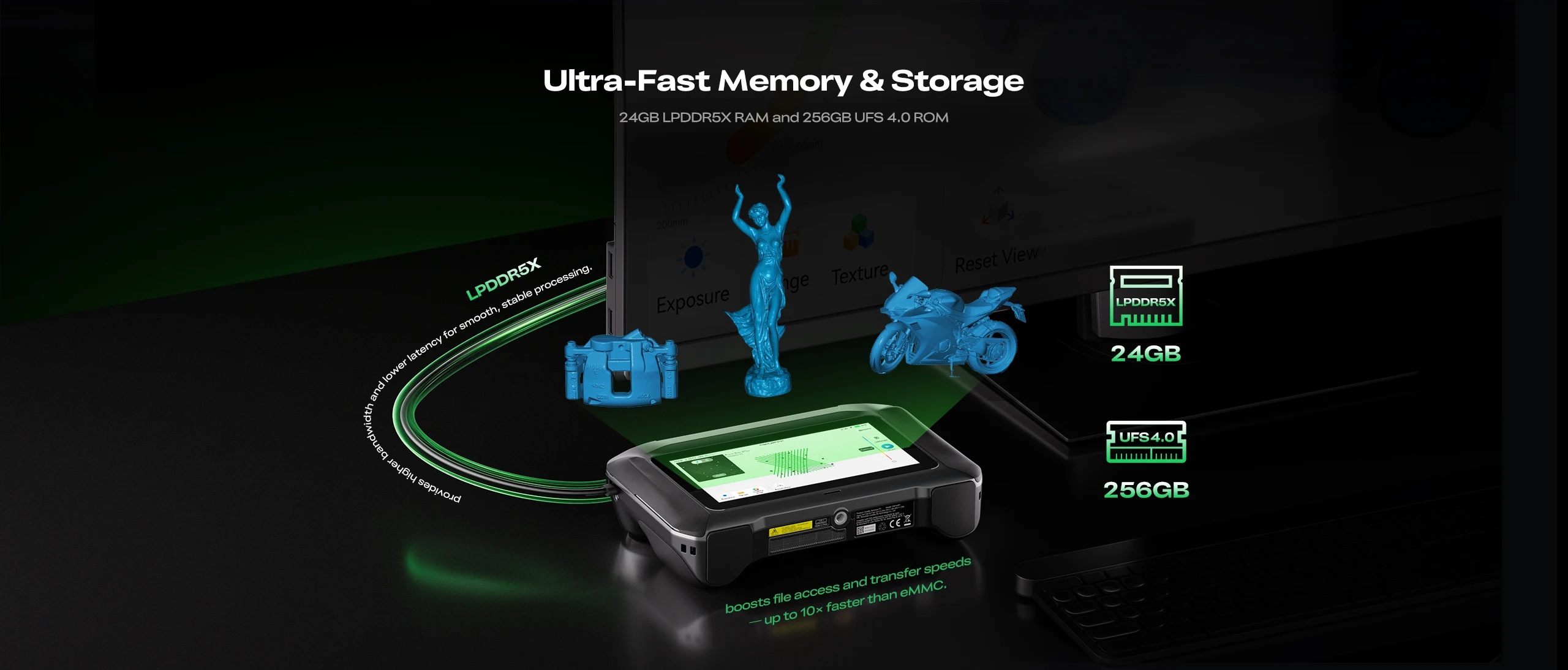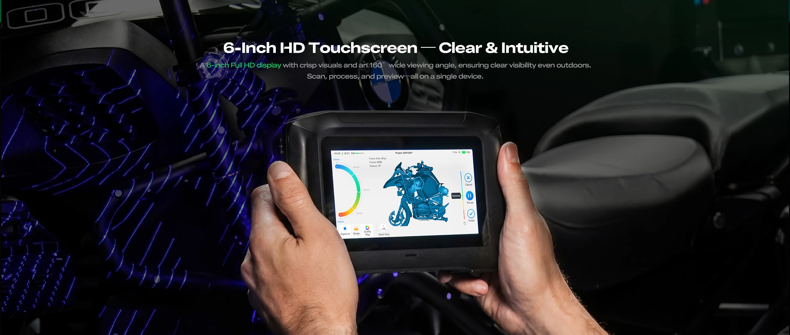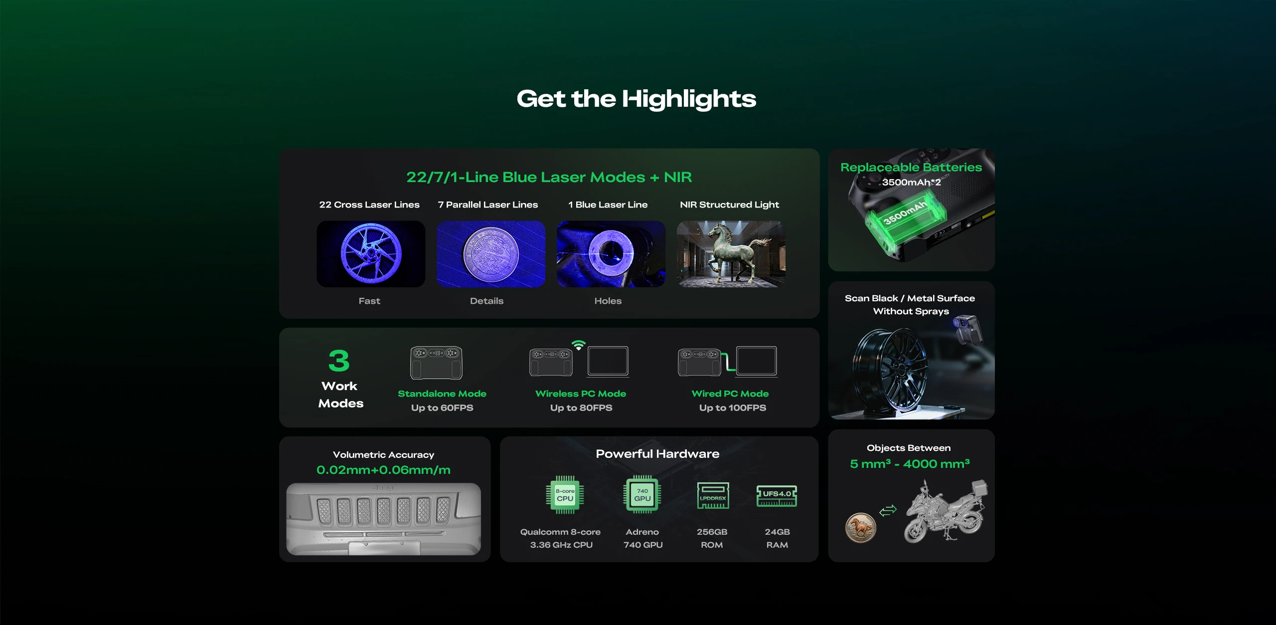 Ultra-High Precision: Industry-leading scanning accuracy, up to 0.02mm (Blue Laser mode), meeting professional-grade modeling and reverse engineering requirements.