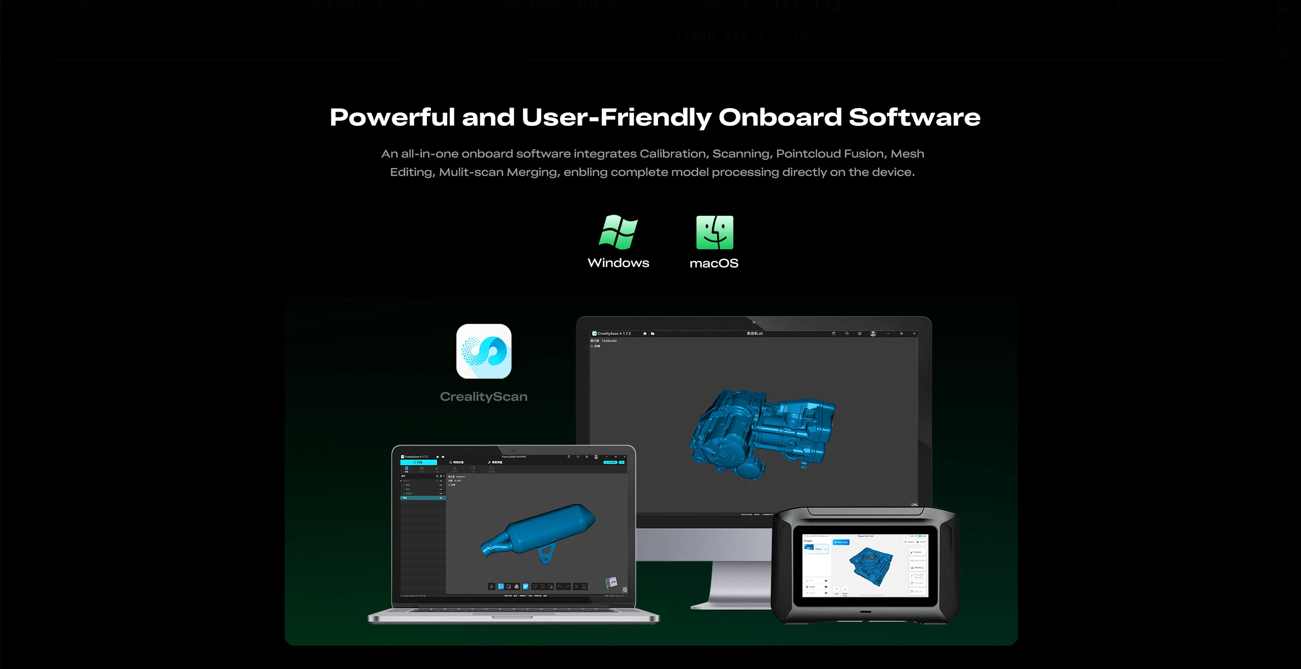 Powerful PC Software (CrealityScan 4): Provides more advanced control, one-click processing, and professional manual editing capabilities for complex model processing needs.