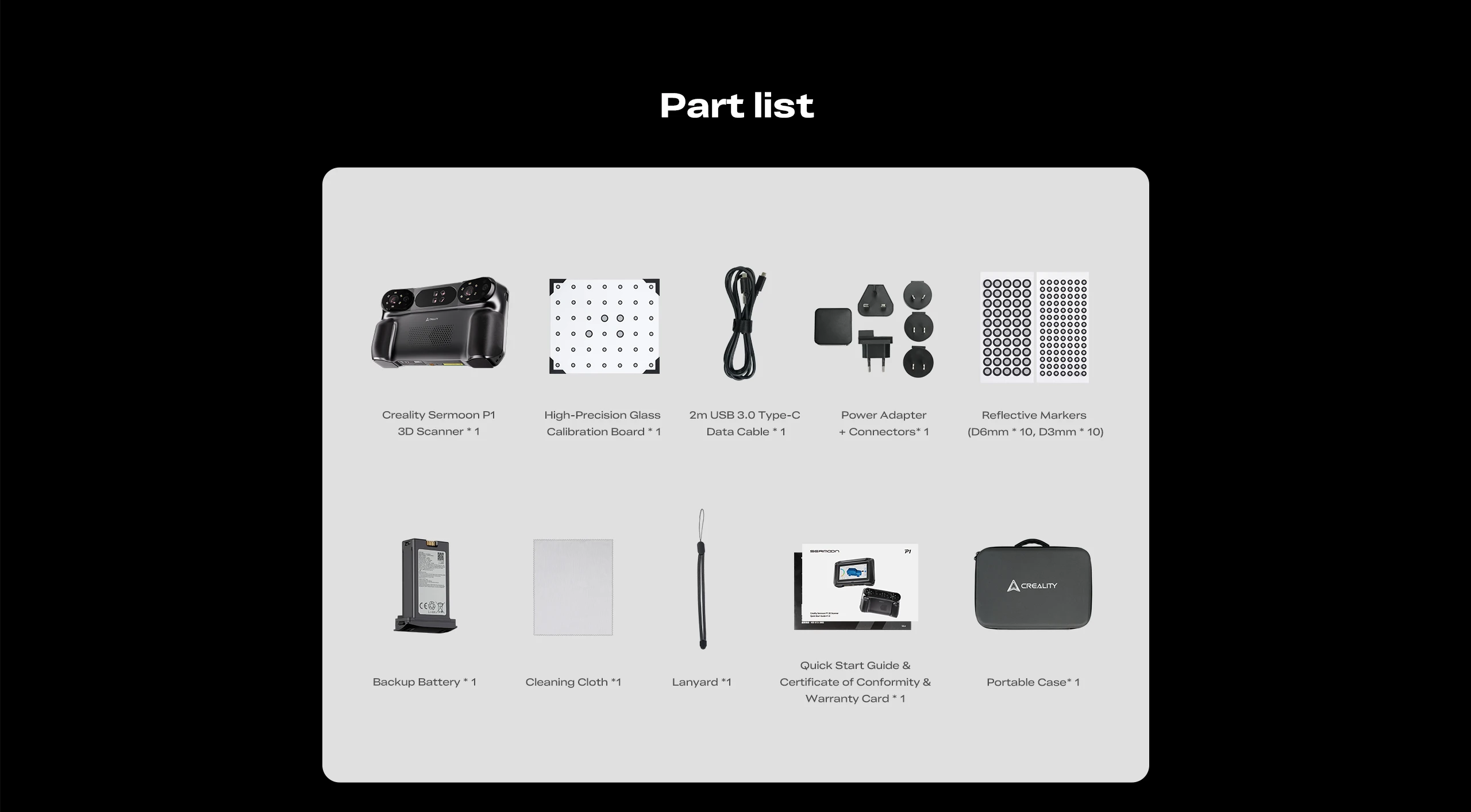 All-in-One Accessories: Includes high-precision glass calibration board, spare battery, carry strap, cleaning cloth, various reflective markers, etc., ready to use out of the box.