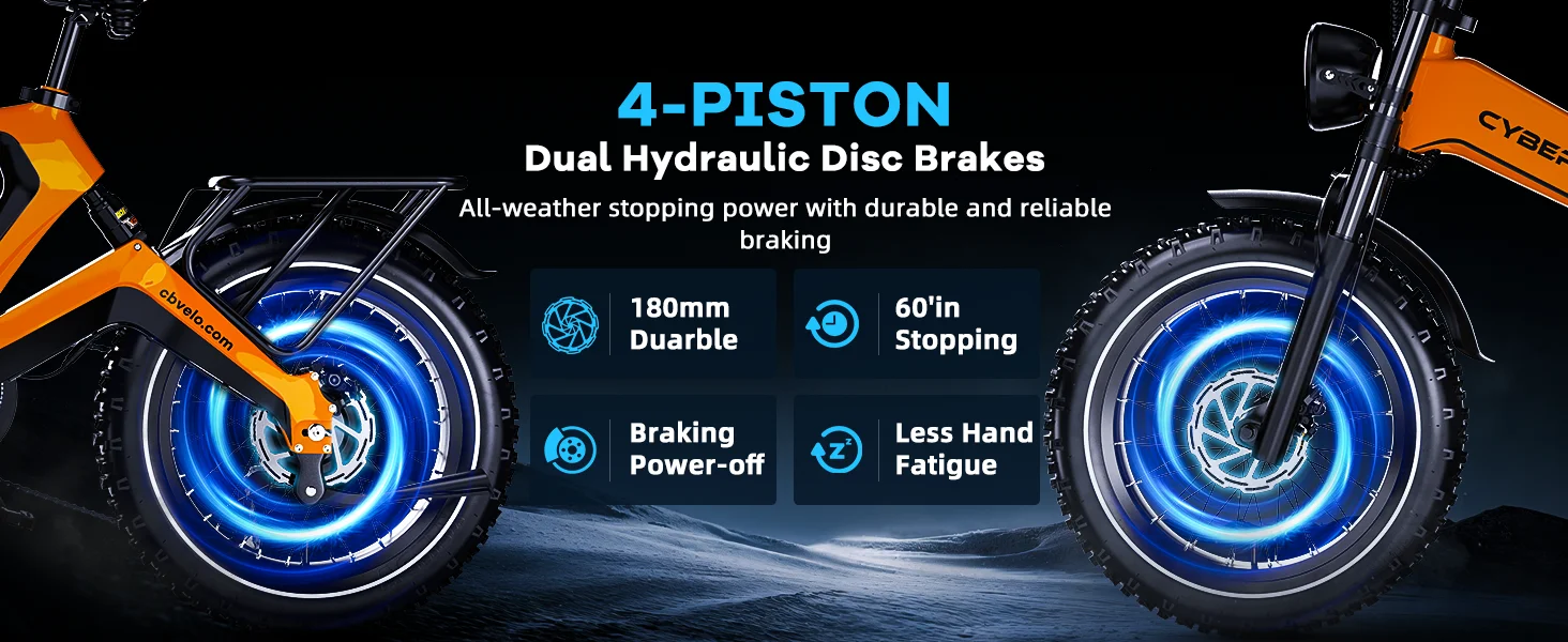 Dual Suspension & Hydraulic Disc Brakes: Electric bike for adults experience ultimate comfort and safety with advanced front and rear dual suspension, designed to absorb shocks from bumpy roads and rough trails. The hydraulic disc brakes deliver powerful and responsive stopping with minimal effort, ensuring precise braking control in all conditions. Ideal for high-performance e-bikes, electric mountain biking, off-road riding.