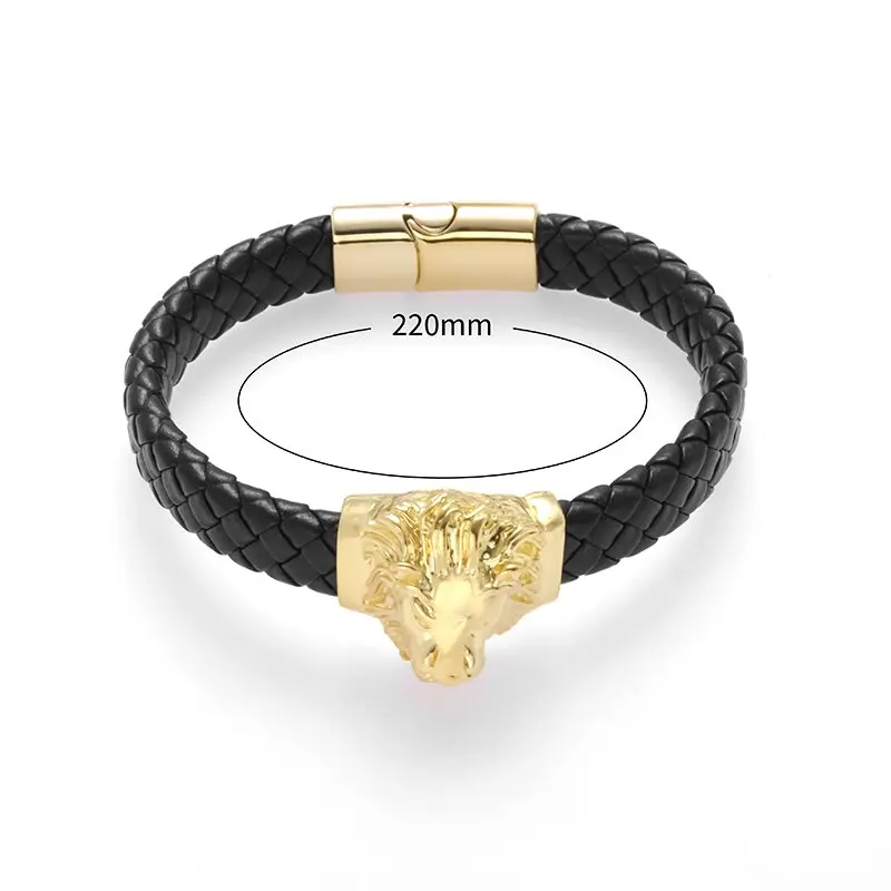 Domineering Lion Head Animal Hand-Woven Single-Layer Leather Magnetic Bracelet Hip-Hop...