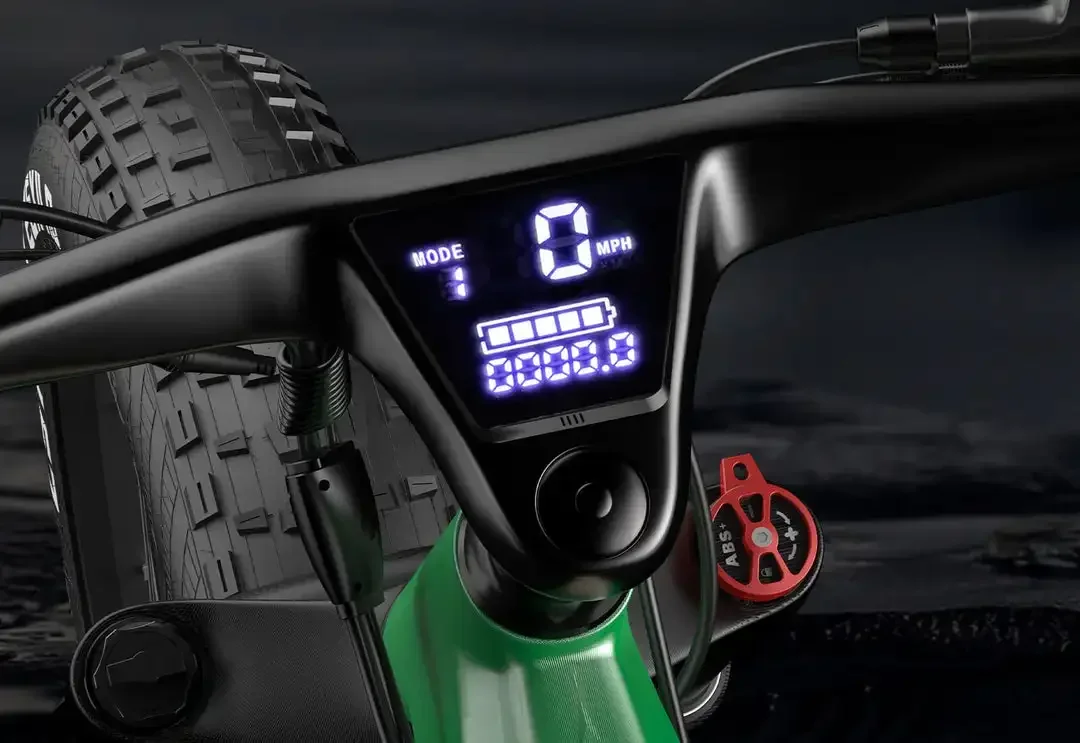 Instrument screen size and display parameters are integrated. The vertical pipe is 9 degrees, E=80MM, H=40MM, ¢28.6MM. The handlebar is ¢22.2*700MM. Instrument LCD, 48V power display. J agreement, maximum speed limit 45KM/H. 5th gear assist, (waterproof line)