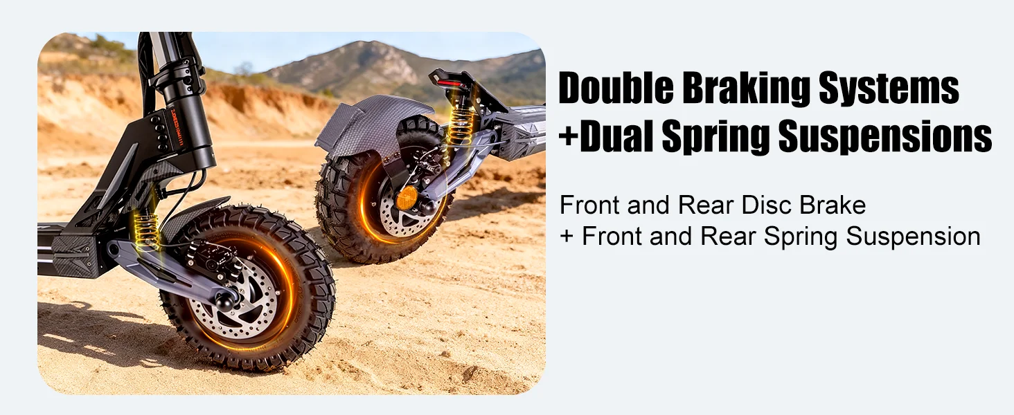 A: Designed for off-road adventures, perfect for mountains, dirt paths, and rugged terrain! 🌲 Rain riding is fine, but avoid extreme weather/deep puddles and prolonged exposure to sun/rain.