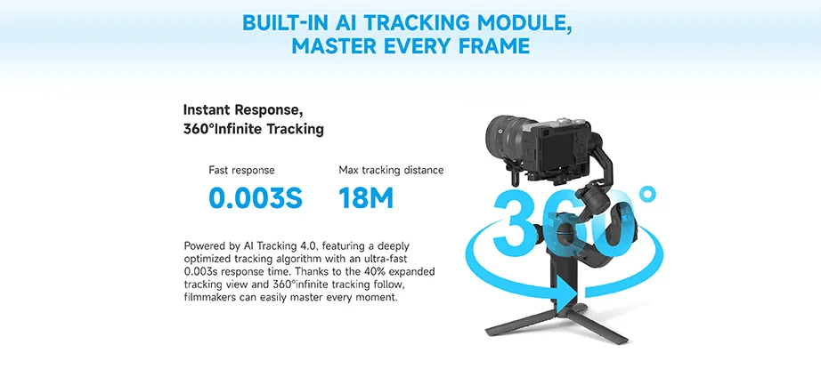 FeiyuTech's SCORP Mini 3 Pro stands out with its cutting-edge AI tracking technology. It seamlessly tracks movement, allowing you to focus solely on capturing that perfect shot. This means you can record dynamic action scenes without worrying about stability. Because of its precision, even novice users can achieve professional-looking footage effortlessly.