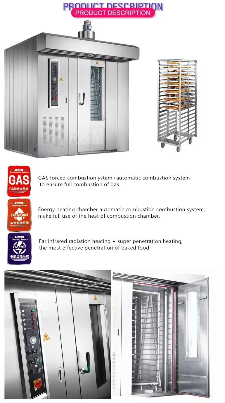 Gas Diesel Electric Industrial Rotary Oven for Bakery Sale Bread Baking,Italy Commercial 8 16 32 64 Trays Rack Rotary Oven