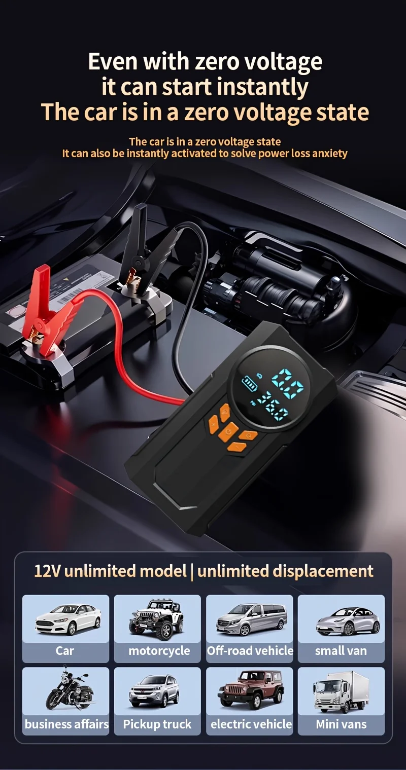 JKUOO 3000A Car Jump Starter Portable Power Bank Car Battery Booster 12V Car Starting Device for Petrol 7.0L Diesel 5.5L