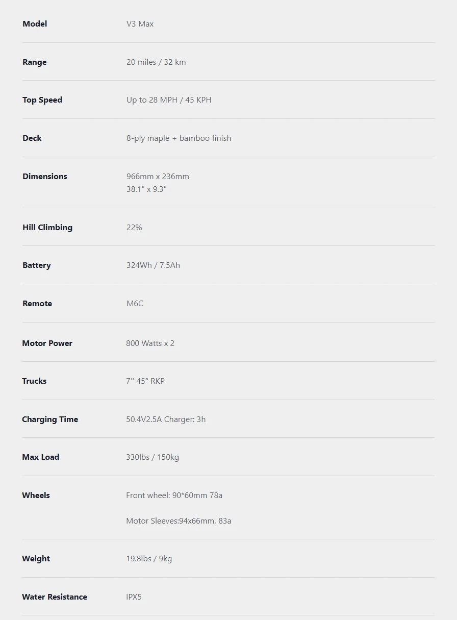 V3 Max is equipped with a dual-wheel setup designed for both comfort and performance: