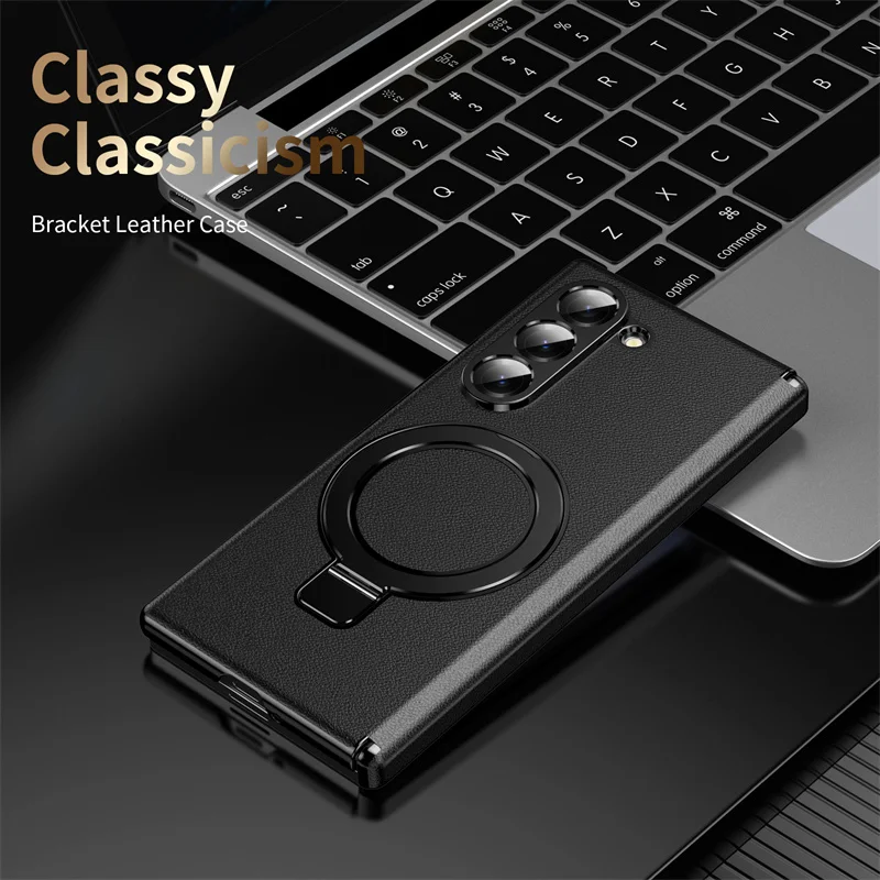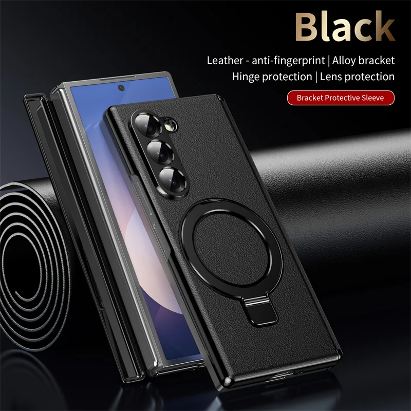The Metal Magnetic hinge holder is engineered specifically for the Samsung Z Fold 6, enhancing both the functionality and aesthetics of your device. This innovative case utilizes a robust metal magnetic hinge that not only provides seamless folding but also ensures a snug fit. As a result, your phone remains fully protected from accidental drops and daily wear and tear. Additionally, the sophisticated design allows for effortless access to all buttons and ports, making it highly convenient for everyday use.