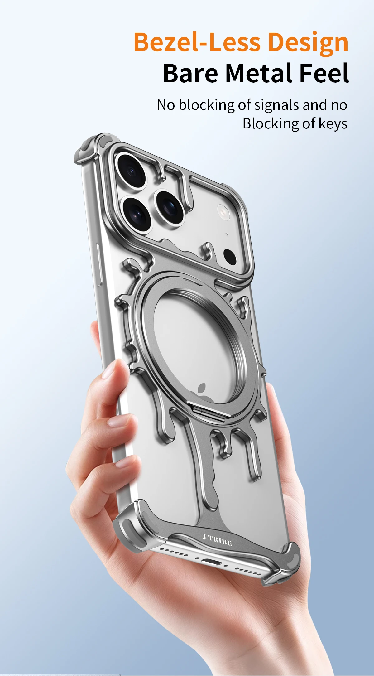 This minimalist metal frameless case is designed specifically for the iPhone 17 Pro Max, providing users with a sleek and elegant look. The frameless design highlights the phone's original aesthetic, so you can maintain the beauty of your device while adding a layer of protection. It’s perfect for individuals who appreciate sophisticated style, as this case combines form and function seamlessly.