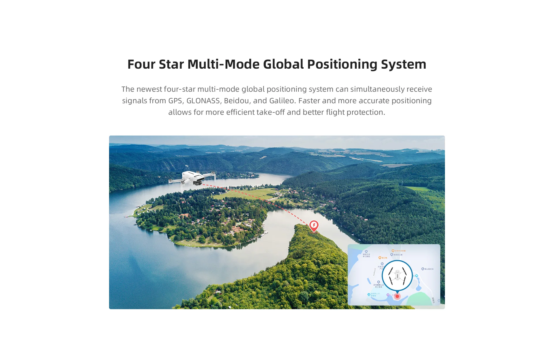 Adopting the latest third-generation TDMA image transmission system,higher sensitivity,and stronger anti-interference performance,flight operation is optimally flexible and convenient and the transmission stable and smooth.