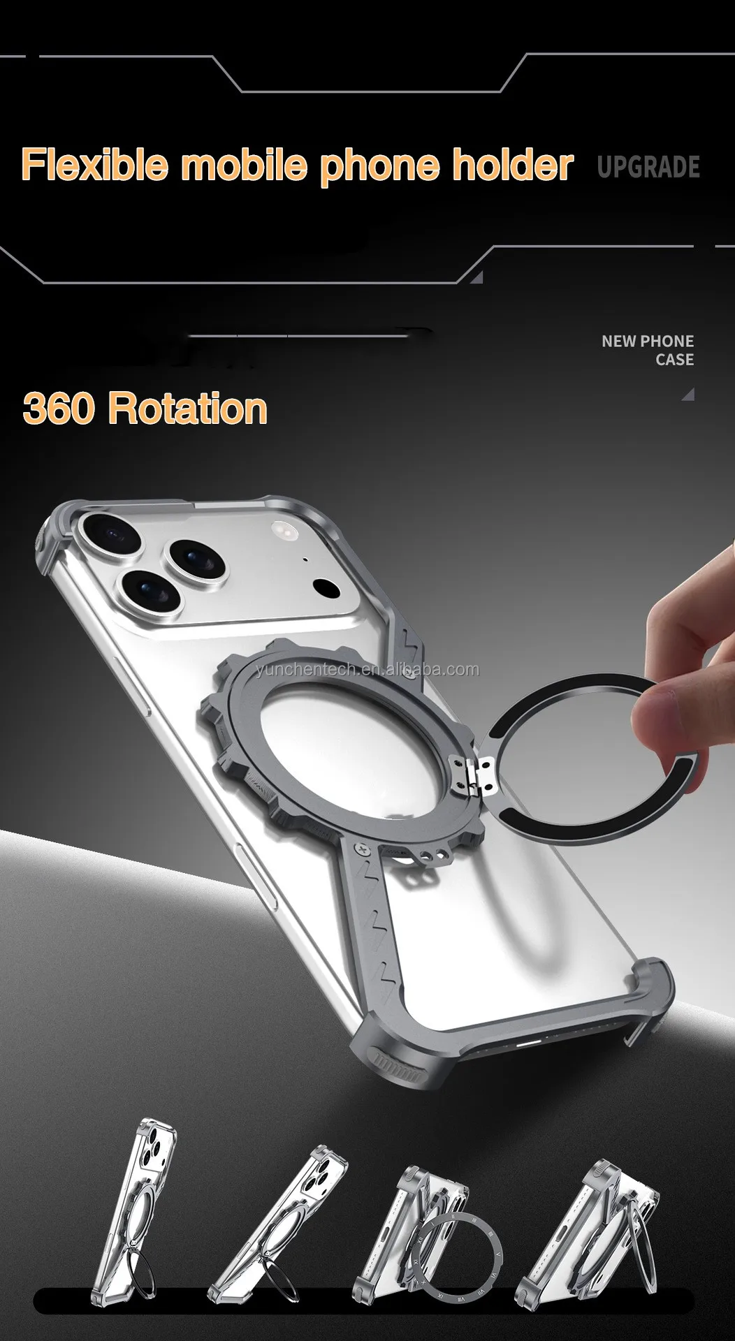 New Product Aluminum Frameless Phone Case 360 Magnetic Rotation Stand...