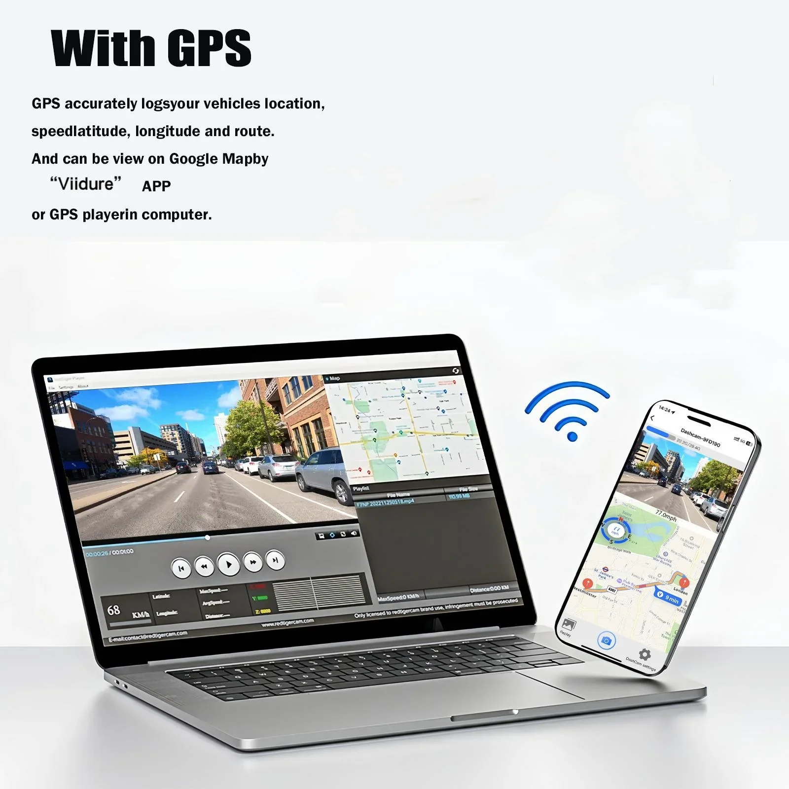 NOK 4K UHD Dash Cam WIFI GPS Car DVR Front and Rear Dual Lens Auto Car Drive Recorder Night Vision G-Sensor 24H Parking Monitor