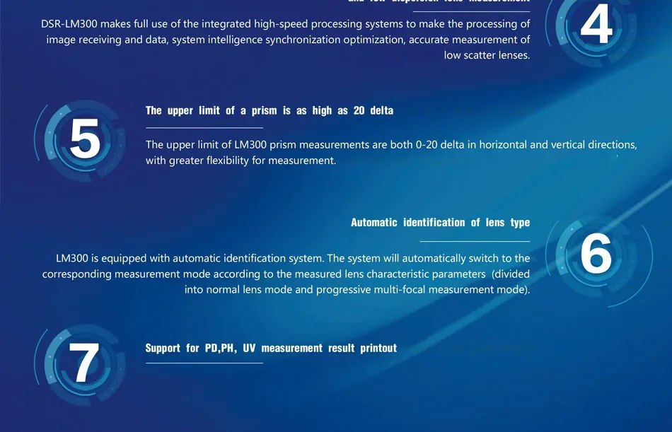 LM-300 makes full use of the integrated high-speed processing systems to make the processing of image receiving and data, system intelligence synchronization optimization, accurate measurement of low scatter lenses.