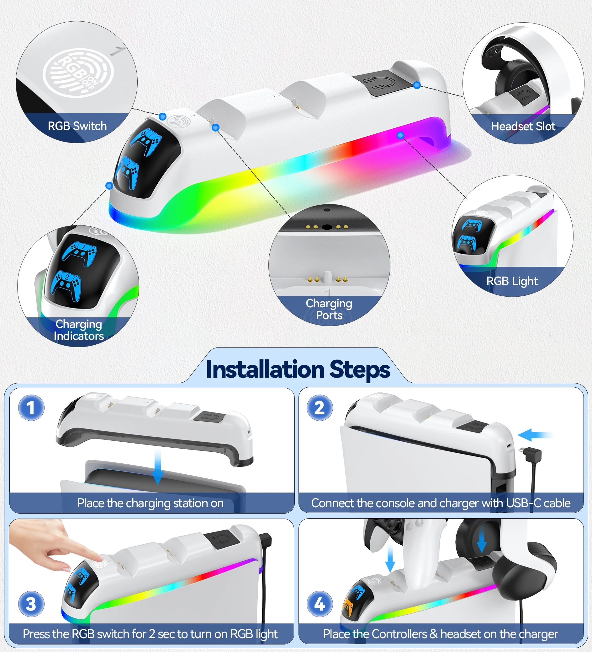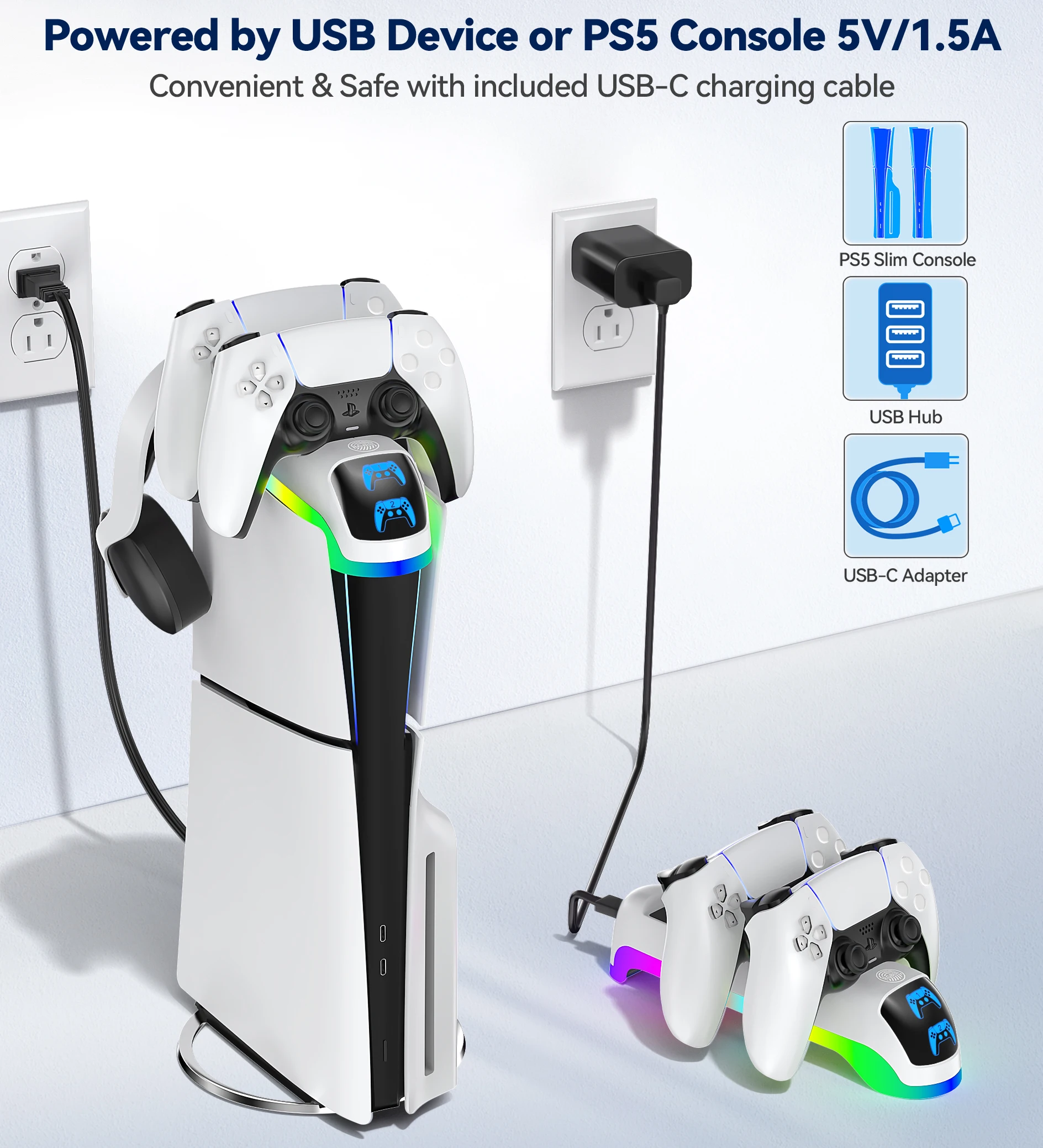 Cable hidden design, perfect match with PS5 slim console