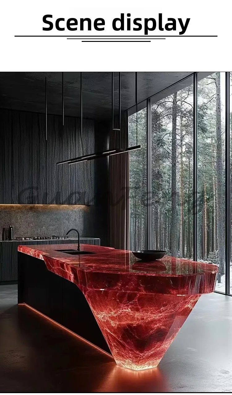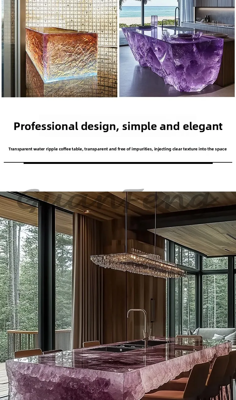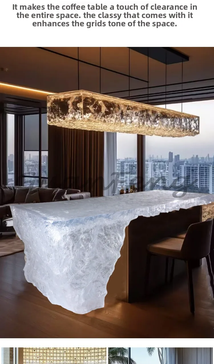 Premium Light Luxury Transparent Resin Hotel Front Desk Restaurant Villa Kitchen Partition Luminous Crystal Glacier Island Table