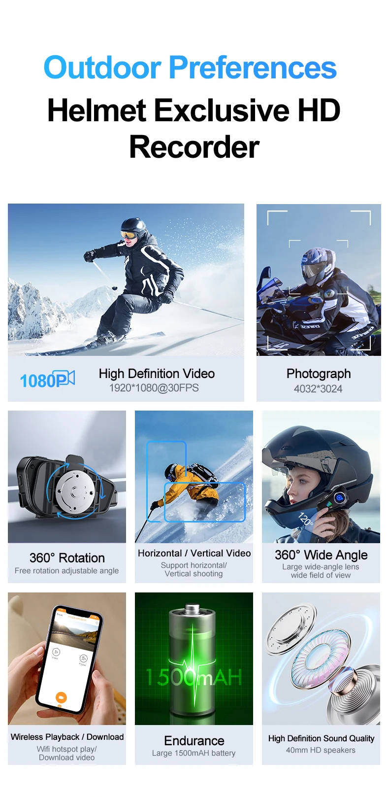 Q28 Motorcycle Helmet Headset Bluetooth Hands Free Call Waterproof Heaphone Wireless 1080P Video Dashcam TF Card as gift