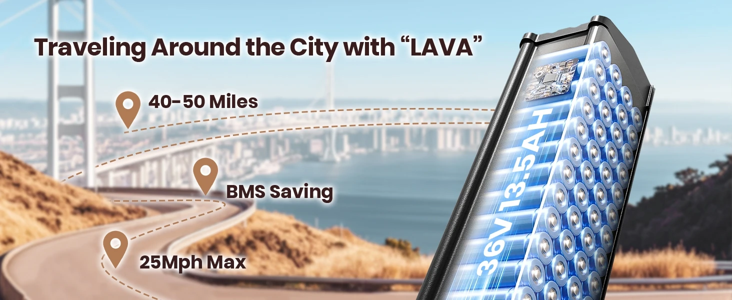 Long Range & Safety Certification: 36V 13.5AH removable battery with a range of up to 50 miles on a single charge. Riders of all ages can ride it in all conditions and can meet all your needs for commuting, shopping, traveling and more.