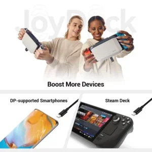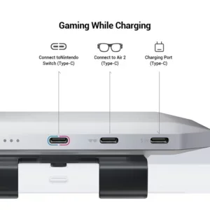 Since your RayNeo does not come with built in power (offering uniquely lightweight comfort on your face), it will need to be plugged in to your favorite charged or powered device for use. The very end of the right temple tip must be plugged into an included USB-C to connect to other devices. The Nintendo Switch has a special accessory that is available for use called the Joydock. The Joydock connects onto the back of the Nintendo Switch so that the Rayneo Air 2 display can conveniently connect to the Switch. Wired/wireless adaptors may be needed for certain devices, but this varies by the type of device that they are intended to be connected to. Computers and laptops, for example, need to be able to support the USB-C interface, while TVs should be connected through a HDMI cable to a USB-C adaptor. Popular Android-based smartphones may support the DP (DisplayPort) connection, and iOS Devices require a dedicated adaptor. (Any necessary adaptor is sold separately.)