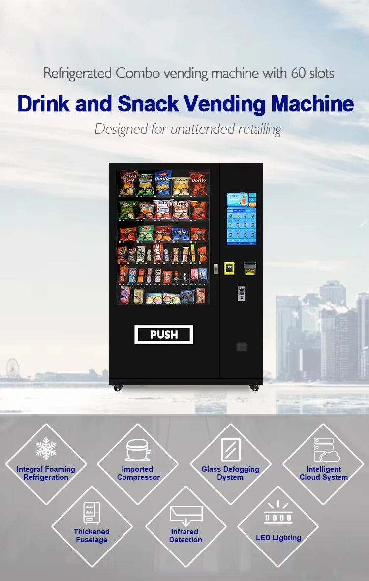 Refrigerated Wall Mounted Vending Machine Combo Hot Sellers for Foods and Drinks 21.5 Inch Digital Touch Screen