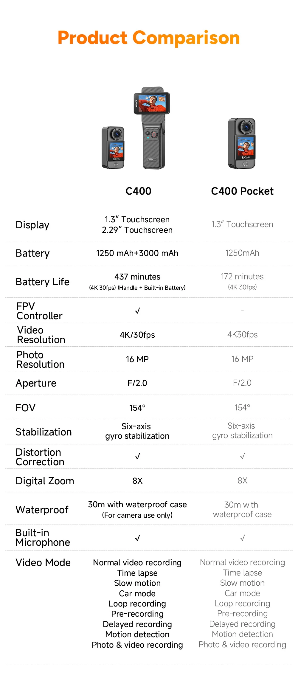 SJCAM C400 Action Camera Handheld Stabilized Night Vision Camera Vlog...