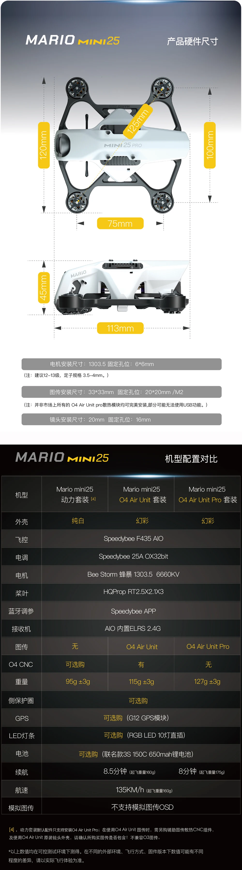 Speedybee Mario Mini 25 Mini25 2.4Ghz 3S FPV Drone (F435 AIO FC and OX32bit 25A 4in1 ESC)