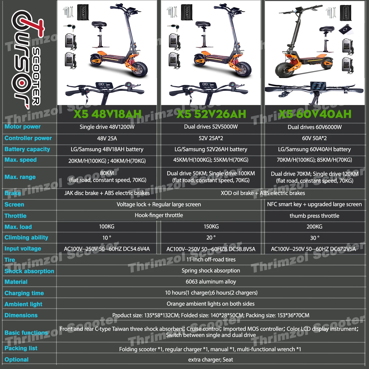 The TOURSOR X5 electric scooter features dual 6000W motors that deliver incredible power for riders seeking speed and robust performance. Achieving a top speed of 85KM/H, this scooter is designed for thrilling rides across varied terrains. Whether navigating city streets or tackling off-road trails, the strong motor setup ensures smooth acceleration and reliable hill-climbing ability. This powerful configuration makes the TOURSOR X5 electric scooter ideal for adults who want an adrenaline-filled commuting or adventure experience.