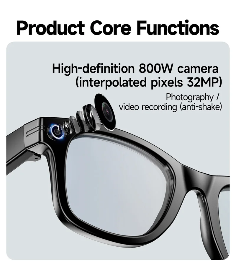 Xiaomi 800W Pixel Smart Glasses With AI Camera Recognition Video Recording Bluetooth Calling Music Playback Glasses For Gifts