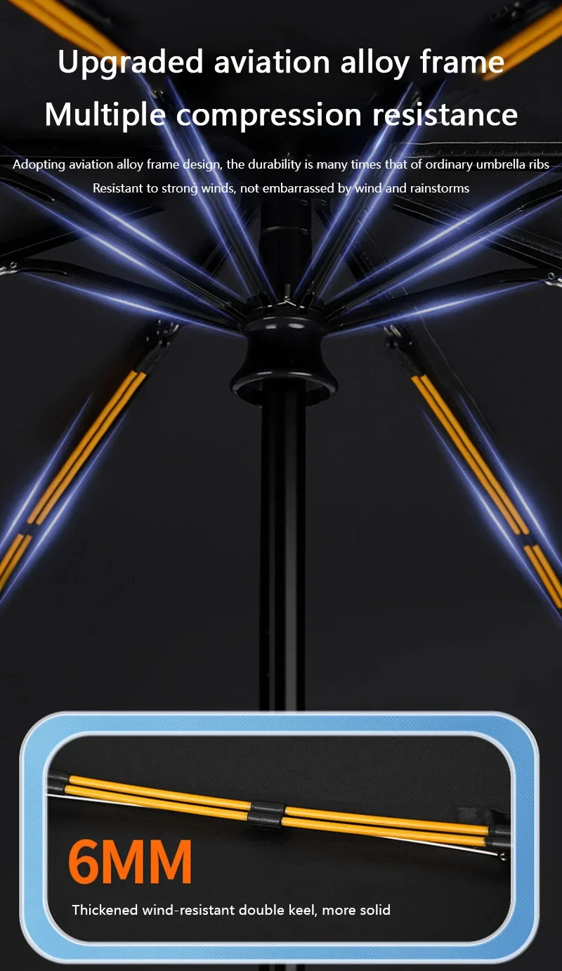 The Xiaomi MIJIA 24 Bone Folding Umbrella offers fully automatic operation, allowing effortless opening and closing with a single click. Its three-layer construction provides broad coverage while remaining compact for easy transport and storage. Made with UV-resistant materials, it ensures lasting protection against sun damage with SPF 50 rating. Designed for adults, this umbrella delivers robust rain and wind resistance. The elegant black adhesive coating enhances durability and adds a sophisticated touch, making it suitable for various weather conditions and occasions.