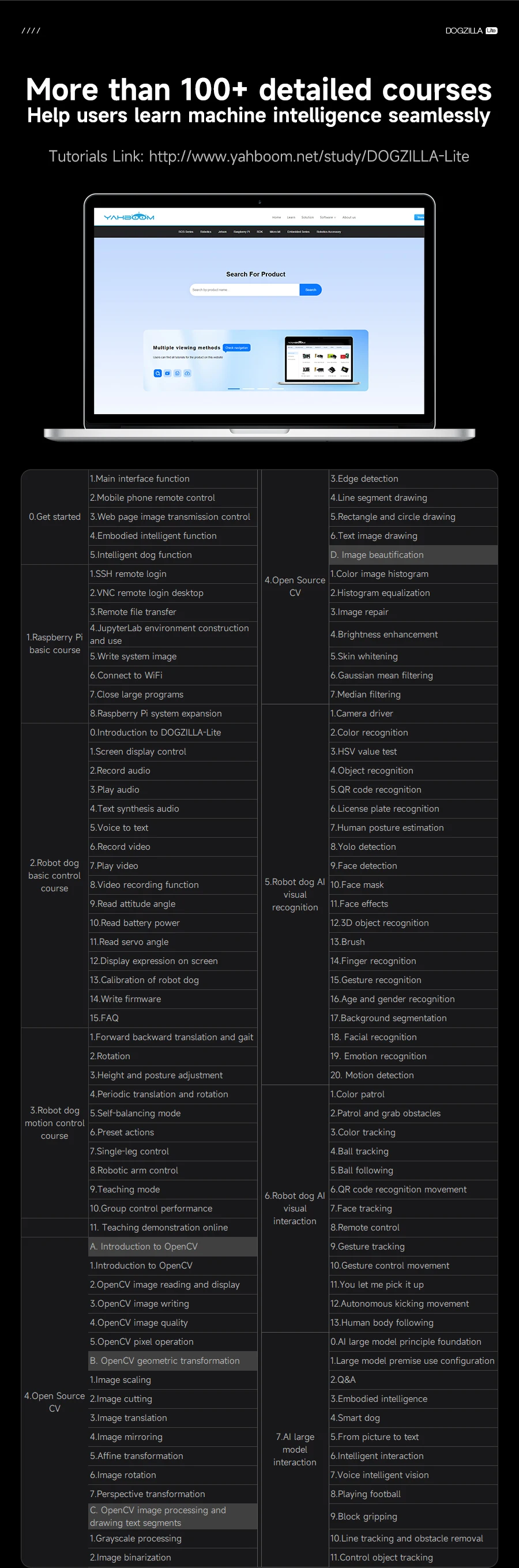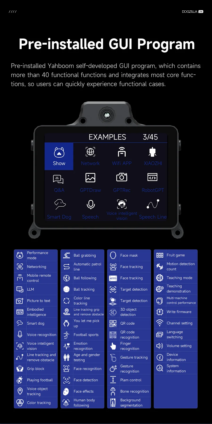 4. 40+ functions: DOGZILLA-Lite pre-installed with a GUI program, users can experience it directly and quickly after getting it.